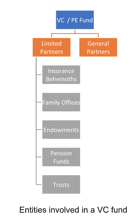 Limited Partners provide Capital Contribution while General Partners invest the fund pool into multiple companies on the basis of a defined investment strategy.